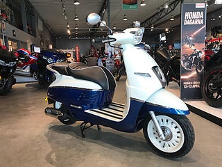 With the elystar long gone peugeot is returning to the 150 market with its long awaited retro scooter the django which we tested in 125 form just a few months ago. Currently priced at 2999 its not overly expensive thats thanks to an involvement with sym which helped to keep the price down to realistic levels whilst still retaining the kind of quality feel youd expect from peugeot. Now its up to you to choose which of the three historic two tone liveries evokes your inner french flair.